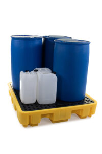 Uncovered spill pallets may fill with rainwater and in the event of a container leak, oil and chemicals could escape. Covered spill pallets eliminate this risk and keep the content safe and secure.